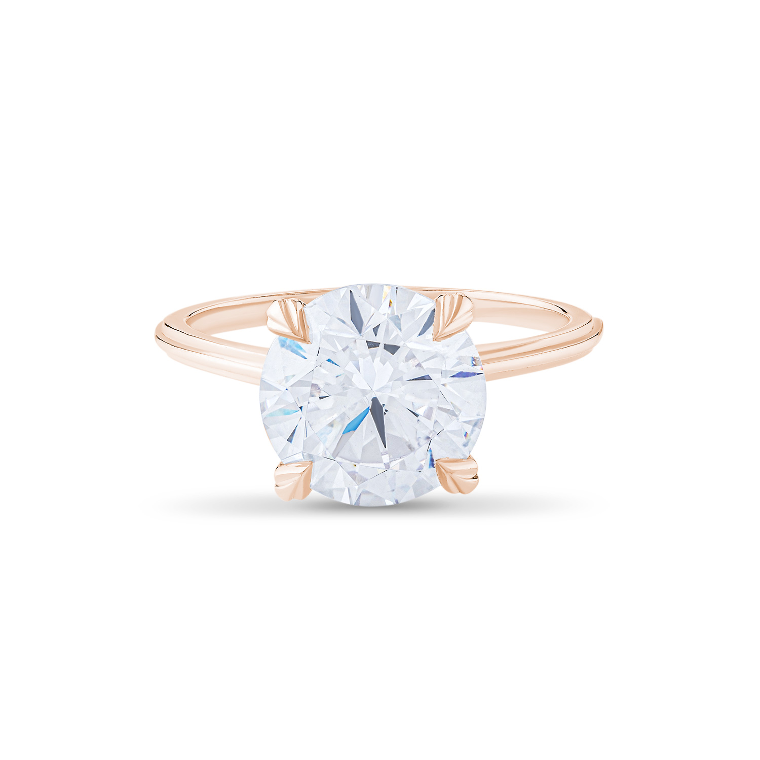 A classic solitaire ring featuring a brilliant round center stone in a sculpted four-prong setting, paired with a subtly contoured shank that adds a refined, modern touch.