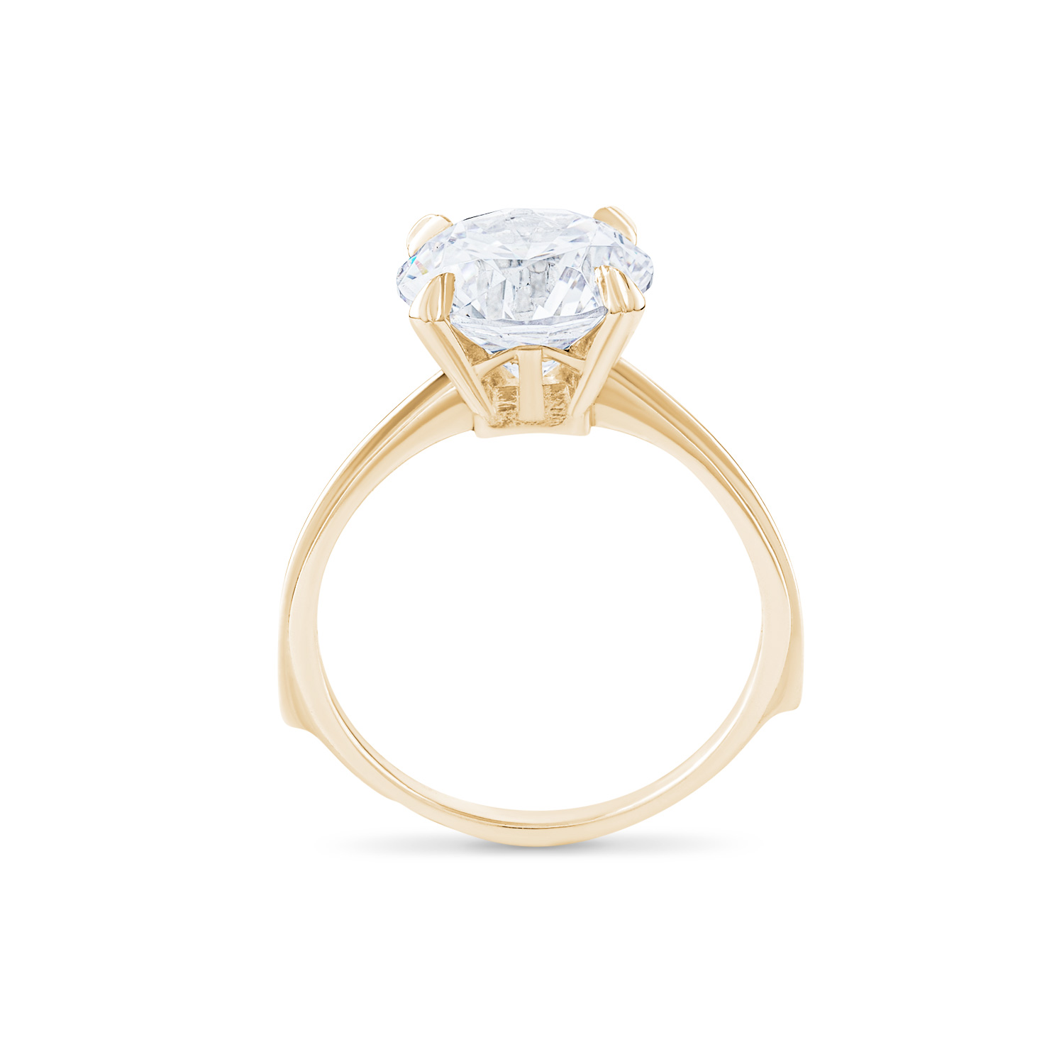 A classic solitaire ring featuring a brilliant round center stone in a sculpted four-prong setting, paired with a subtly contoured shank that adds a refined, modern touch.