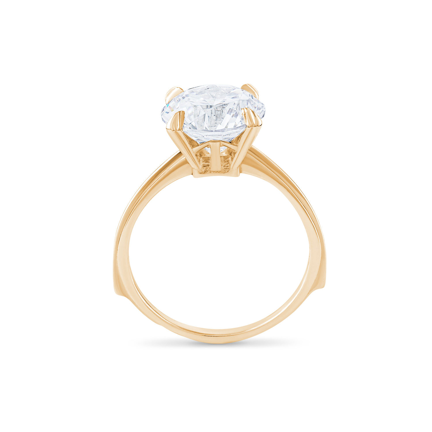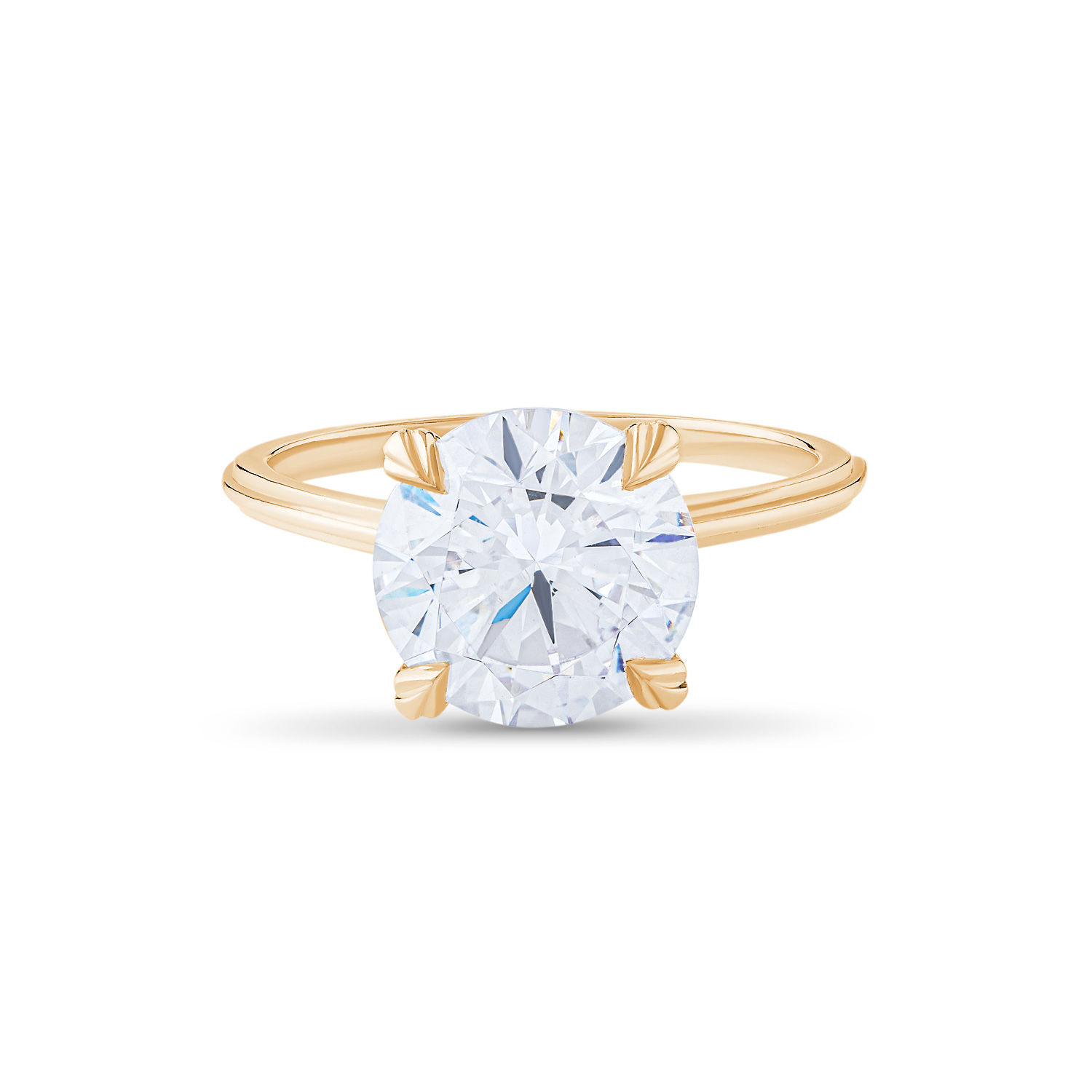 A classic solitaire ring featuring a brilliant round center stone in a sculpted four-prong setting, paired with a subtly contoured shank that adds a refined, modern touch.