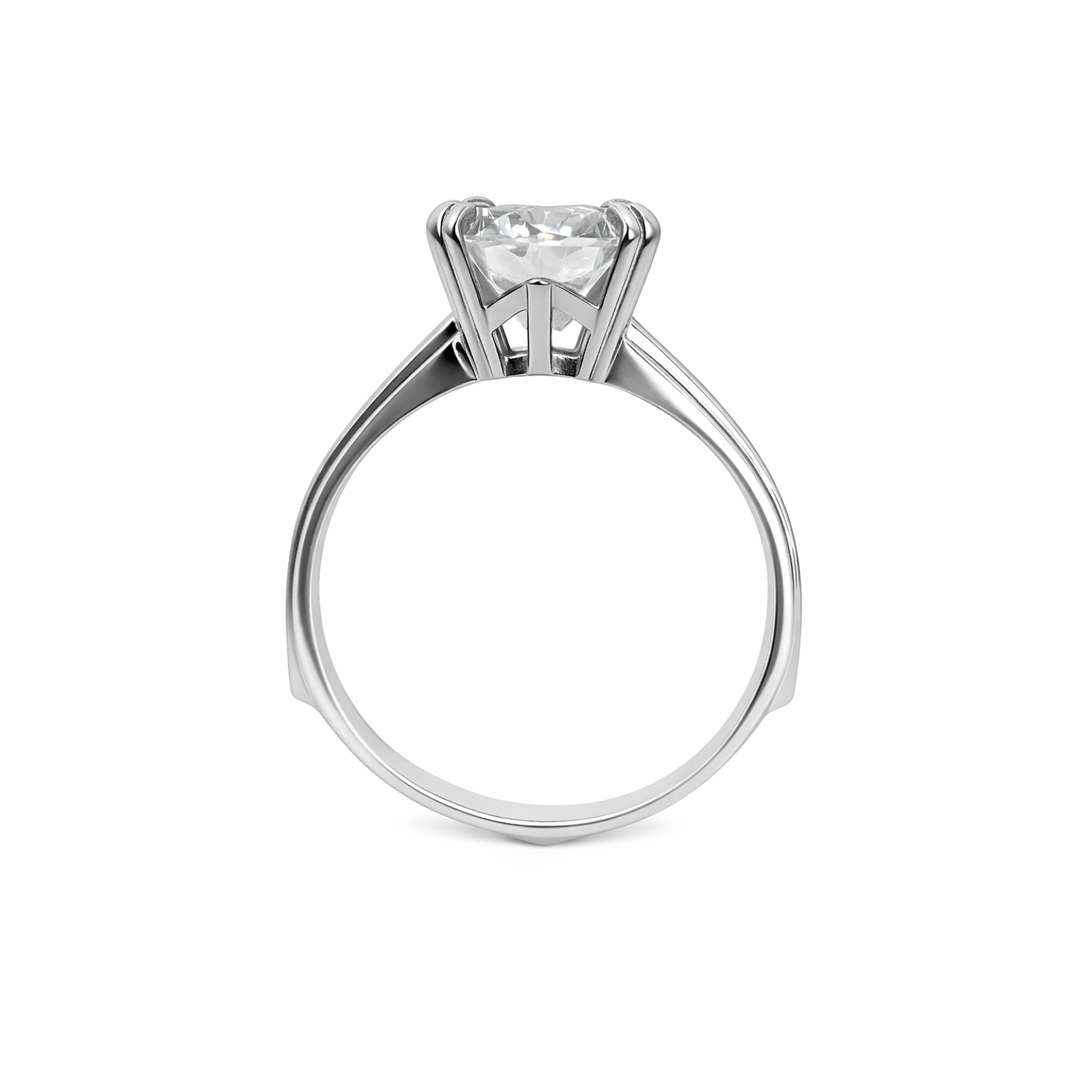 A classic solitaire ring featuring a brilliant round center stone in a sculpted four-prong setting, paired with a subtly contoured shank that adds a refined, modern touch.