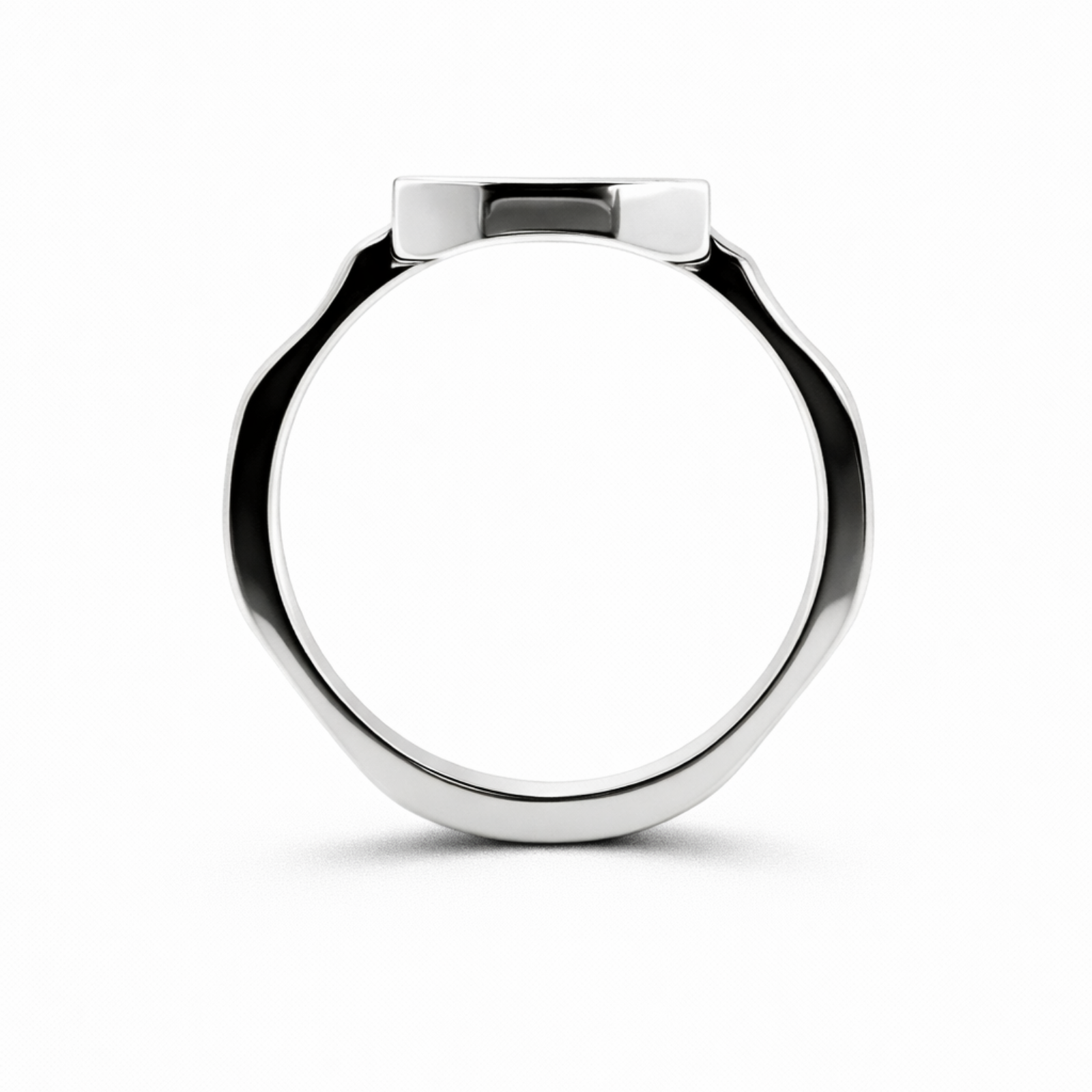 A distinctive octagonal ring with a bold, architectural spokes design for an edgy, modern statement.