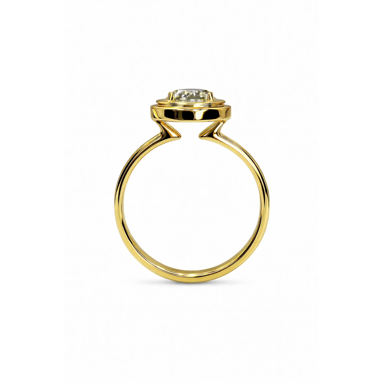 An elegant ring showcasing an oval-cut gemstone framed by a smooth, sculptural bezel.